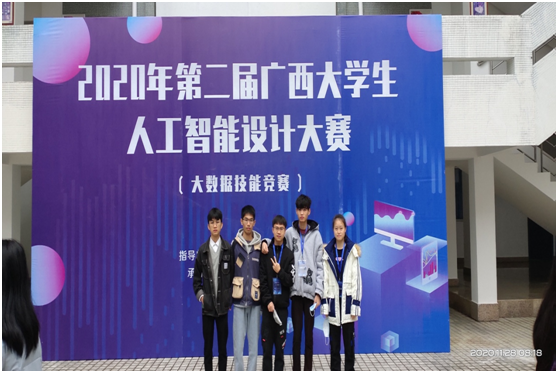 2020年11月,计信学院周波老师带领计信学院入围第二届广西大学生人工智能设计大赛决赛的两支队伍赴桂林参赛,本次赛事由广西区教育厅主办,广西人工智能学会、广西高校计算机类专业教学指导委员会协办,桂林电子科技大学承办。