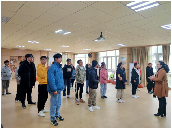 为了培养学生积极心理素质,激发学生内在动力,增进团队成员之间的沟通、增强合作意识,活动开始时,郭老师就抛出问题——“快乐是什么?”为了解决这个问题,郭老师带领大家进行了一场轻松愉快的团体活动。