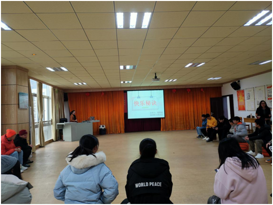 在最后的总结中,郭老师告诉我们快乐其实是一种心理感受,而快乐往往是我们自己决定的。只要你够细心,你就会发现快乐如同星星点点般密布在我们身边的每一个角落,唾手可得。郭老师还告诉我们快乐的秘诀——把快乐分享,会更快乐。希望同学们能通过本次活动更进一步地培养自身积极心理素质,在今后的生活中能够快乐每一天。