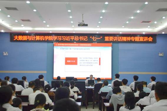 近日,学习习近平总书记“七一”重要讲话精神专题宣讲会在图书馆122举行,宣讲会由学校党委常委、组织部部长易云飞主讲,由365完美体育党委书记彭金松主持,学院师生代表参加。