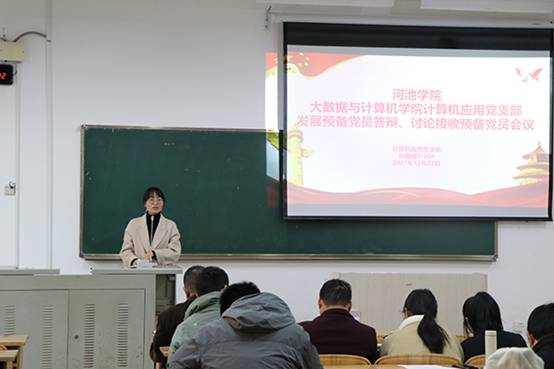 2021年12月22日16:00,365完美体育计算机应用党支部在弘毅楼3-204召开接收预备党员大会。本次大会由蒙鹏程同志主持,支部全体成员参会。