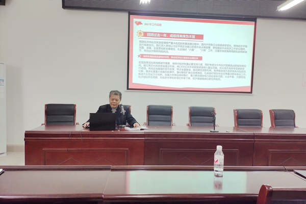 接着,院长林芳带领大家学习2022全国两会政府工作报告,主要学习2021年工作回顾、2022年经济社会发展总体要求和政策取向、2022年政府工作任务三方面内容,他强调我们要关心国家大事、了解时事热点,扎实做好自己的工作。