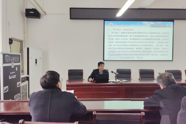 首先,党委书记彭金松带领大家学习《深刻理解“两个确立”,自觉做到“两个维护”》,主要学习“两个确立”的含义、决定性意义、理论依据、历史依据、“两个确立”的实践依据等方面,最后他讲到要自觉做到“两个维护”。