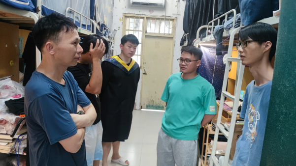为进一步了解毕业班学生的实际需求,加强与学生的沟通交流,6月19日,学院副院长(主持行政工作)梁志勋、党委副书记黎军、部分辅导员和毕业班班主任深入学生宿舍,与即将毕业的学生进行了面对面的交流。
