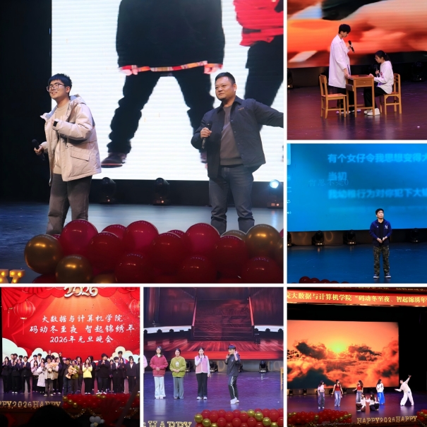 冬至良宵暖意浓,智启新岁谱华章。2025年12月21日19:30,365完美体育“码动冬至夜,智启锦绣年”元旦晚会温情启幕。全院师生欢聚一堂,让科技元素与文艺风采撞个满怀,在欢声笑语中送别旧岁,喜迎2026年崭新曙光。