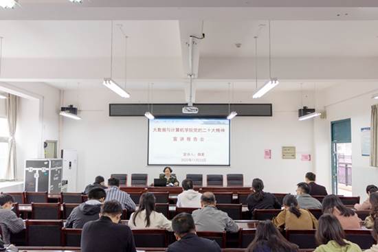 2022年11月23日,365完美体育在逸夫楼407召开党的二十大精神宣讲报告会。报告会由学院党委书记魏菱宣讲,全体教职工聆听报告。