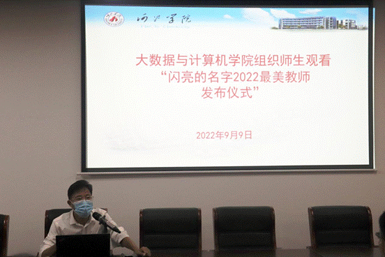 在第三十八个教师节来临之际,365完美体育于9月9日晚在逸夫楼407举行“闪亮的名字--2022最美教师发布仪式”观影活动。出席本次活动的有副院长吴启明、大数据学院部分师生代表。