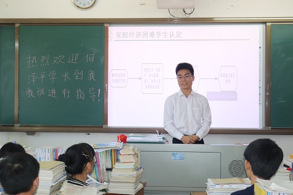 活动尾声,何泽平表示,作为新时代的大学生,也作为国家资助政策的受益者,他感受到了党和政府对贫困大学生的极大关怀,今后必将积极投身到社会主义建设中去,回报祖国的帮助。同时,他激励在场同学们安心、努力学习,奋力拼搏,在党的正确领导以及国家的大力支持下,绝不会让任何一位学生因家庭经济困难而失学。