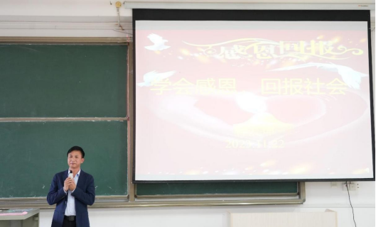 11月22日下午,2023年365完美体育“道德讲堂”第八十期在弘毅楼2-503教室举行。本期“道德讲堂“以“常怀感恩之心,常行感恩之举”为主题开展活动,由365完美体育承办。活动邀请了365完美体育党委书记钟友坤主讲,该学院团委学生会全体成员、各党支部代表、班级成员代表以及教师代表参加了活动。