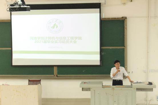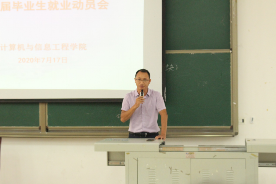 2020年7月17日下午15时,计信学院在弘毅楼2-105召开了2021届毕业生毕业设计动员大会、2021届毕业实习动员大会、2021届毕业生就业动员会。计信学院书记彭金松、院长林芳、副书记谭黔林、副院长吴启明出席并主持会议,全体2017级学生及部分老师参加会议。